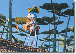 Instead of having two fully detailed hero-models only as in “Toy Story”, “A Bug’s Life” asked for many more of these complex models. “Almost all of our characters in this film were like Buzz and Woody”, technical director Eben Ostby observes. “On this film, except from a few minor characters, all the models had the same rich set of facial controls”. Using Pixar’s proprietary Marionette software to animate these complex models would prove highly efficient for the animators, but put quite a bit of stress on the hardware and brought the team’s progress to a crawl at one point. “We were pushing the envelope and hit an unexpected hurdle with our software”, Pixar’s Graham Walters admits. Fortunately it turned out to be the only crisis on the production and with additional brainpower, a rescue team consisting mainly of personal from the RenderMan department, were able to optimize the code to the point that the Marionette system became up to eighty times faster than it was before.